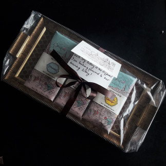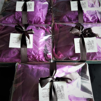 All boxes are door delivered through our premier logistics partner in insulated cold packaging. Our elegant packaging includes pearl, and gold finished, elegant bar and Bon Bon gift boxes, antique glass trays, textured square boxes in satin ribbons, and matching hamper sets. All boxes are personalized with handwritten messages, adding a touch of exclusivity.